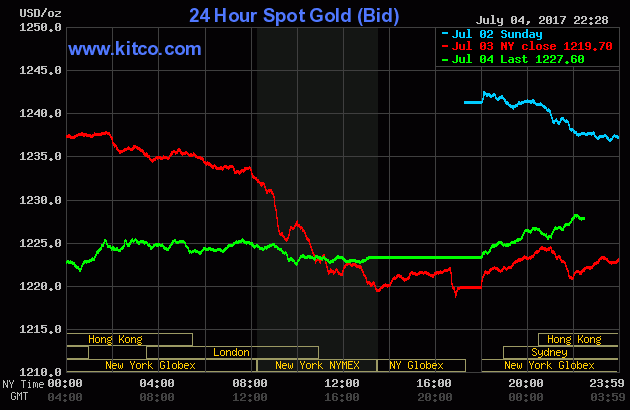Chốt phiên giao dịch Thứ Ba (ngày 4/7), giá vàng giao tháng Tám trên sàn Comex tại Sở Giao dịch New York Mercantile tăng $4,60 (+0,4%) lên chốt tại $1.223,80/oz, lấy lại phần nào những gì đã mất trong phiên rớt giá kinh hoàng (-1,9%, sâu nhất kể từ tháng 12/2016) trong phiên bán tháo Thứ Hai (ngày 3/7).