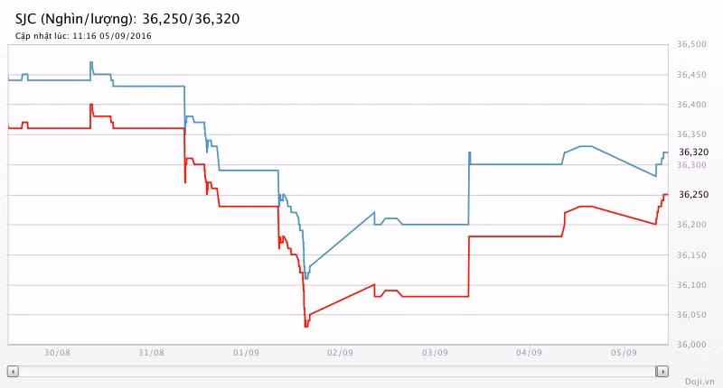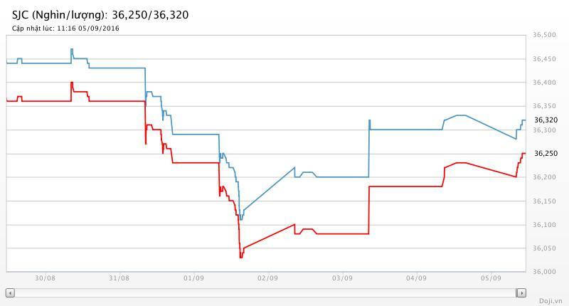 Trong khi, tại các đại lý của Doji, giá vàng miếng SJC cũng được Tập đoàn điều chỉnh tăng 20 nghìn đồng chiều mua nhưng lại giảm 10 nghìn đồng chiều bán về yết ở 36,25 – 36,32 triệu đồng/lượng (MV-BR) đối với giao dịch lẻ; và đắt hơn 10 nghìn đồng chiều mua, đồng thời rẻ hơn 10 nghìn đồng chiều bán đối với giao dịch buôn ở thị trường Hà Nội. Hiện, doãng chênh lệch 2 chiều mua - bán ở Doji là 70 nghìn đồng/lượng.
