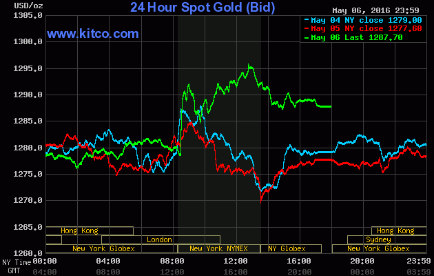 Và tại thị trường Châu Á, giá vàng giao ngay Kitco cũng đang đứng ở $1.287,70/oz.
