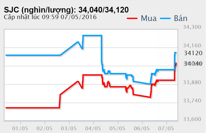 Tương tự, tại các đại lý Doji, giá vàng miếng SJC cũng vẫn được Tập đoàn điều chỉnh tăng 130 nghìn đồng lên niêm yết ở 34,04 – 34,12 triệu đồng/lượng (MV-BR) đối với giao dịch lẻ; và đắt hơn 10 nghìn đồng chiều mua, đồng thời rẻ hơn 10 nghìn đồng chiều bán đối với giao dịch buôn ở thị trường Hà Nội. Với biểu giá này, doãng chênh lệch 2 chiều mua – bán vàng SJC tại Doji hiện ở mức 80 nghìn đồng/lượng.