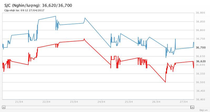 Tại các đại lý của Doji, giá vàng miếng SJC được tập đoàn này điều chỉnh tăng nhẹ 10 nghìn đồng lên yết ở 36,62 – 36,70 triệu đồng/lượng (MV-BR) đối với giao dịch lẻ; và đắt hơn 10 nghìn đồng chiều mua, đồng thời rẻ hơn 10 nghìn đồng chiều bán đối với giao dịch buôn ở thị trường Hà Nội. Hiện, doãng chênh lệch 2 chiều mua - bán ở Doji hiện là 80 nghìn đồng/lượng.