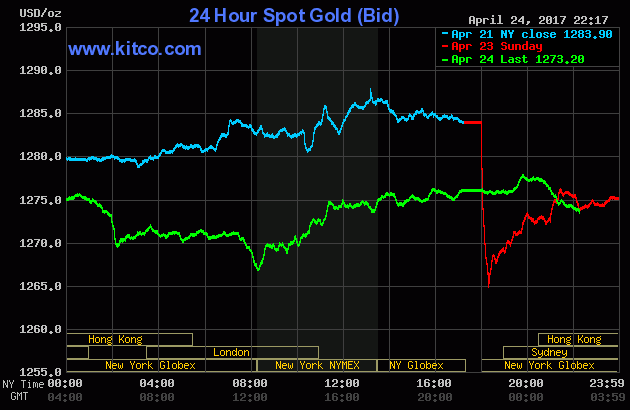 Trên phương thức giao dịch điện tử, tính đến thời điểm 9h08’ sáng nay (giờ Việt Nam), giá vàng giao ngay Comex đang đứng ở $1.273,44/oz.