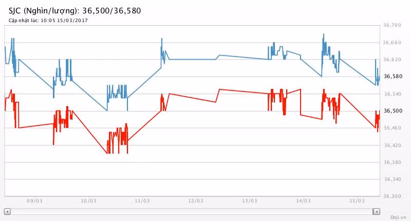 Tương tự, tại các đại lý của Doji, giá vàng miếng SJC chỉ được tập đoàn này điều chỉnh giảm 40 nghìn đồng mỗi chiều về yết ở 36,50 – 36,58 triệu đồng/lượng (MV-BR) đối với giao dịch lẻ; và đắt hơn 10 nghìn đồng chiều mua, đồng thời rẻ hơn 10 nghìn đồng chiều bán đối với giao dịch buôn ở thị trường Hà Nội. Theo đó, doãng chênh lệch 2 chiều mua - bán ở Doji đang là 80 nghìn đồng/lượng.