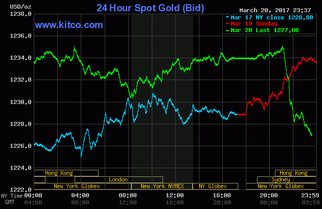 Cùng lúc, tại thị trường châu Á, giá vàng miếng giao ngay trên sàn Kitco cũng được yết ở $1.227,90/oz.