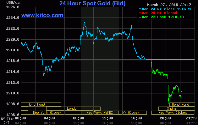 Và tại thị trường Châu Á, giá vàng giao ngay Kitco cũng đang đứng ở $1.210,70/oz.
