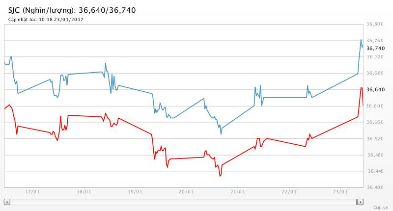 Cập nhật đến thời điểm 10h27’ sáng nay, giá vàng miếng SJC của Công ty TNHH Một thành viên Vàng bạc đá quý Sài Gòn (SJC) đang đứng ở 36,34 – 36,64 triệu đồng/lượng (MV-BR), tăng 30 nghìn đồng chiều mua và 100 nghìn đồng chiều bán so với chốt phiên trước đó.