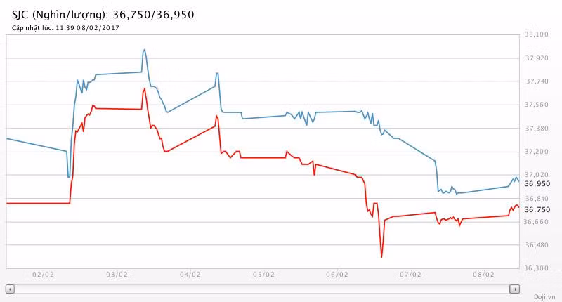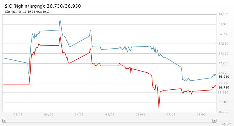 Tương tự, tại các đại lý của Doji, giá vàng miếng SJC cũng được tập đoàn này điều chỉnh tăng 70 nghìn đồng mỗi chiều lên yết ở 36,75 – 36,95 triệu đồng/lượng (MV-BR) đối với giao dịch lẻ; và đắt hơn 10 nghìn đồng chiều mua, đồng thời rẻ hơn 10 nghìn đồng chiều bán đối với giao dịch buôn ở thị trường Hà Nội. Hiện, doãng chênh lệch 2 chiều mua - bán ở Doji là 200 nghìn đồng/lượng.