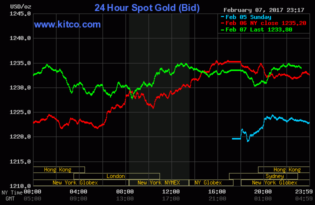 Chốt phiên giao dịch Thứ Ba (ngày 7/2/2017), giá vàng giao tháng Tư trên sàn Comex tại Sở Giao dịch New York Mercantile tăng tiếp $4 (+0,3%) lên chốt tại $1.236,10/oz – phá đỉnh kể từ ngày 10/11, căn cứ theo dữ liệu của FactSet.