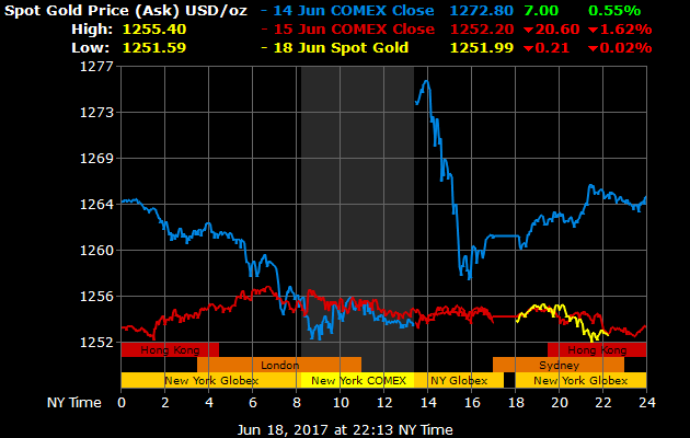 Chốt phiên giao dịch cuối tuần trước (Thứ Sáu ngày 16/6), giá vàng giao tháng Tám trên sàn Comex tại Sở Giao dịch New York Mercantile đảo chiều nhích nhẹ $1,90 (+0,2%) lên chốt tại $1.256,50/oz – thoát đáy kể từ ngày 24/05 vừa lập trong phiên trước đó, theo dữ liệu của FactSet. Tính chung cả tuần, kim loại quý này đã mất giá tới 1,2%.