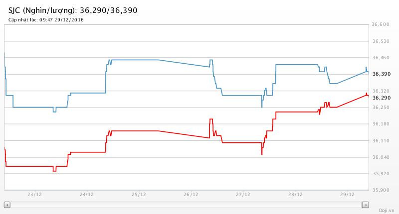 Tương tự, tại các đại lý của Doji, giá vàng miếng SJC cũng được Tập đoàn này điều chỉnh tăng 40 nghìn đồng lên niêm yết ở mức 36,29 – 36,39 triệu đồng/lượng (MV-BR) đối với giao dịch lẻ; và đắt hơn 10 nghìn đồng chiều mua, đồng thời rẻ hơn 10 nghìn đồng chiều bán đối với giao dịch buôn ở thị trường Hà Nội. Hiện, doãng chênh lệch 2 chiều mua - bán ở Doji là 100 nghìn đồng/lượng.