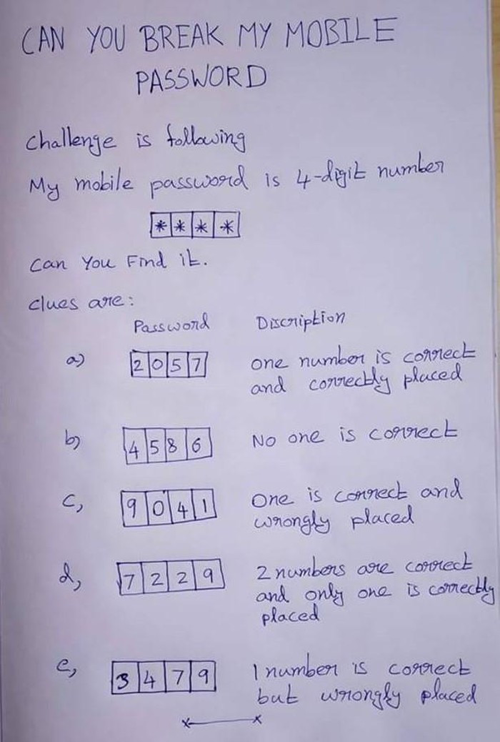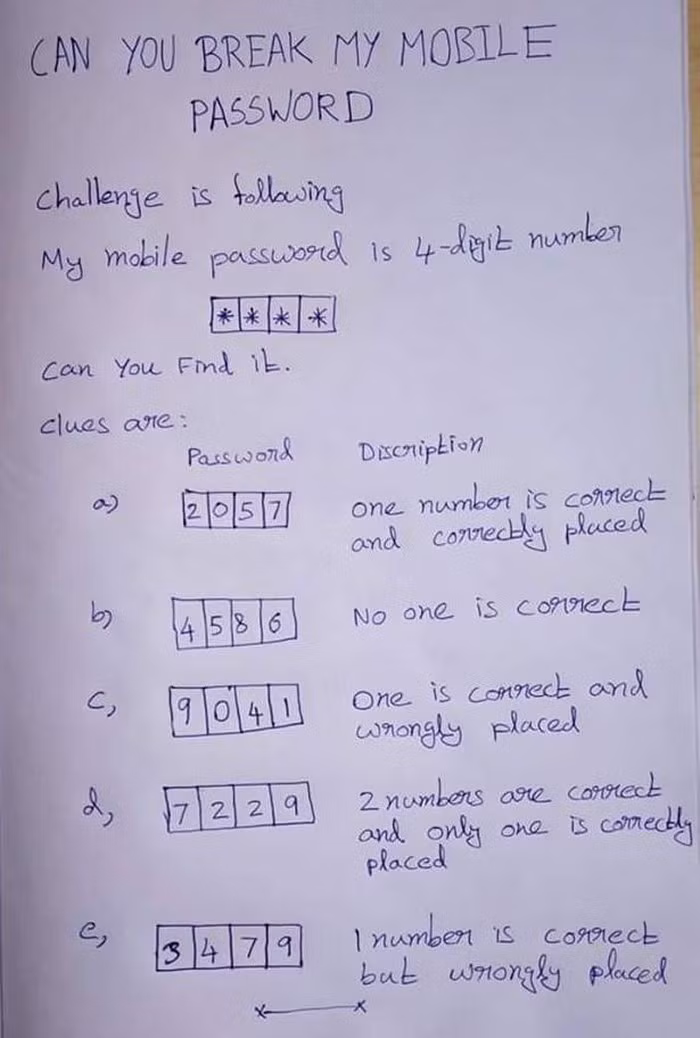 2 - 0 - 5 - 7: Một số đúng và nằm đúng vị trí trong mật khẩu thật của James.