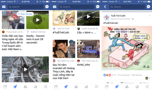 Khảo sát trên ứng dụng Facebook cho iPhone, nội dung hiển thị từ nguồn cấp dữ liệu hiển thị trên Rocket Explorer có nhiều điểm tương đồng với một tạp chí để mọi người tiện lợi hơn trong việc duyệt tin.