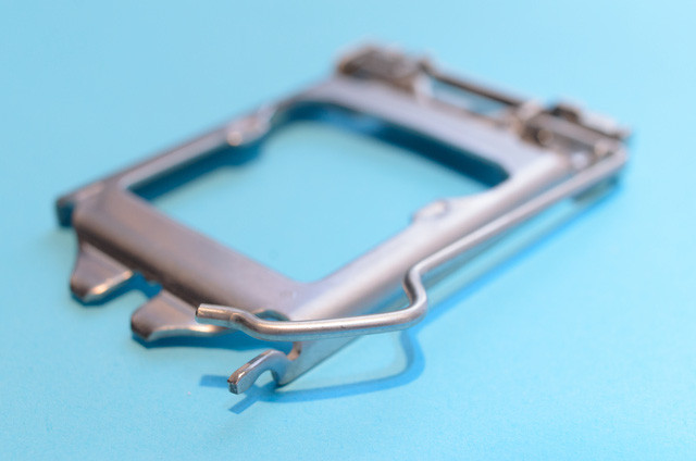 Tiếp theo là khung nẹp CPU, đảm bảo không mainboard nào không có. Được làm bằng kim loại, chắc chắn, đủ để đảm bảo cho CPU luôn nằm chắc chắn bên trong.
