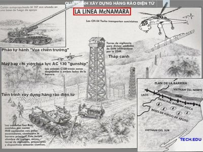 Hệ thống các sensors trinh sát, bãi mìn và hàng rào dây thép gại trong “Hàng rào điện tử McNamara”.