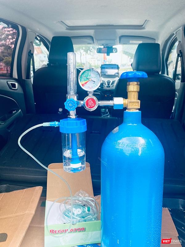 Tay cầm cái mỏ lết, túi đựng van thở, đồng hồ đo áp suất, anh lần lượt di chuyển từng bình oxy vào căn nhà mà họ gọi điện hướng dẫn.