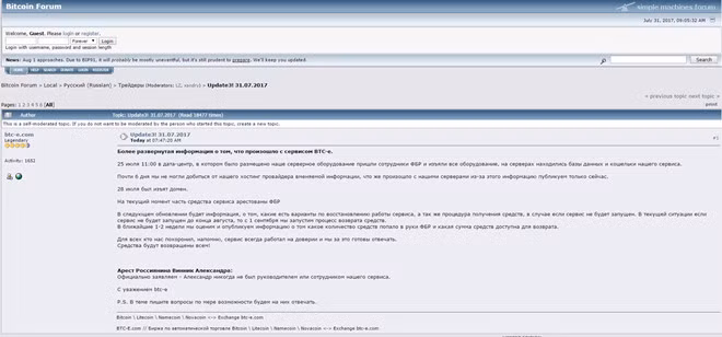 Bên cạnh đó, bài viết cũng đề cập đến việc công dân Nga được cho là quản trị viên của BTC-E bị bắt hôm 27/7. Họ khẳng định, "Alexander Vinnik chưa bao giờ là người đứng đầu hoặc là nhân viên của chúng tôi."