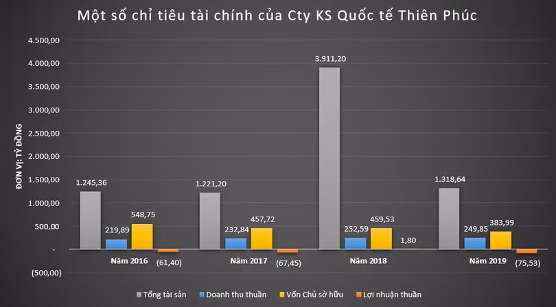 Trong 4 năm gần nhất, Thiên Phúc đều đặn đem về hàng trăm tỷ đồng doanh thu song chỉ 1 lần duy nhất báo lãi vào năm 2018. Tính đến cuối năm ngoái, quy mô tổng tài sản của công ty này đạt 1.318,64 tỷ đồng, vốn chủ sở hữu đạt mức 383,99 tỷ đồng.