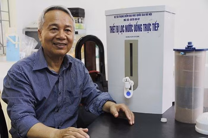 PGS.TS Trần Hồng Côn nổi tiếng là người đã sáng chế ra máy lọc nước giúp lọc sạch nước sông Tô Lịch thành nước uống. Ảnh: VTC.