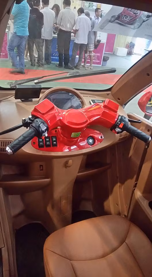 Tay lái điều khiển giống như tay lái xe máy cùng màn hình hiển thị thông tin ở vị trí trung tâm.