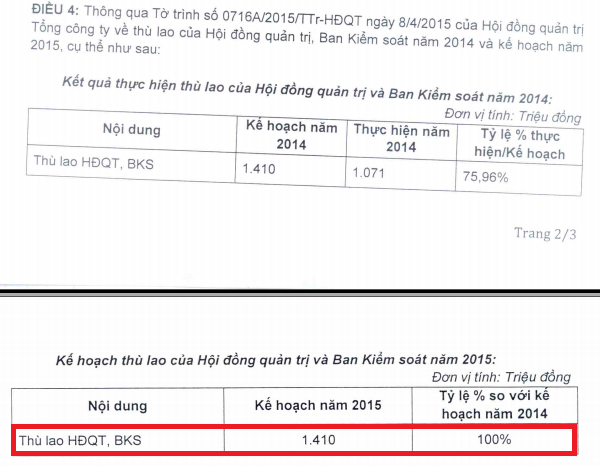 Thù lao HĐQT, BKS của Vinaconex trong năm 2015 được ấn định ở mức 1,410 tỷ đồng (chưa tính thưởng)