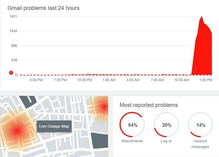 Theo trang DownDetector, sự cố trên lan rộng ở nhiều quốc gia. Trong đó, lượng người dùng báo cáo lỗi nhiều nhất tập trung ở Australia, Ấn Độ, Hàn Quốc, Nga, Tây Ban Nha, Đài Loan và Mỹ. Tại Việt Nam, lỗi dịch vụ Google được người dùng báo cáo nhiều nhất là Gmail với lỗi đính kèm tệp trong thư điện tử.