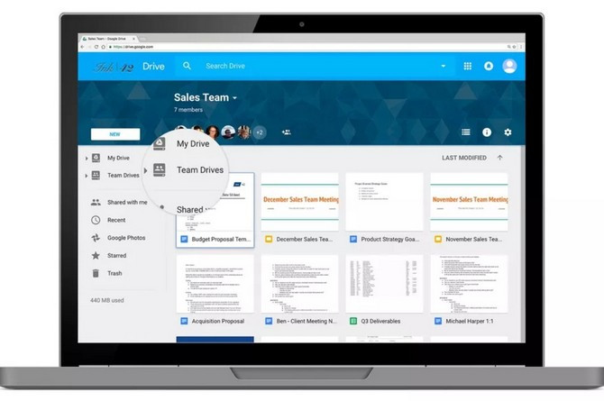 Cập nhật thứ hai là tính năng Team Drive. Đúng như tên gọi của tính năng mới, Team Drives cho phép các nhân viên có thể cùng tải lên và chia sẻ một thư mục lưu trữ đám mây. Tính năng này cũng cho phép thêm các thành viên mới vào trong nhóm chia sẻ dễ dàng.