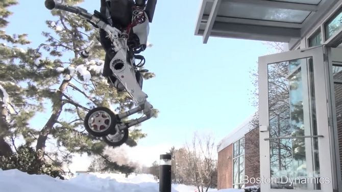 Trong đoạn video được đăng tải trên YouTube, mẫu robot Handle của Boston Dynamics (Google) có thiết kế với chiều cao khoảng 2 mét, hình dáng hao hao giống một người trưởng thành và khả năng di chuyển trên hai bánh xe khá uyển chuyển trên mọi địa hình.