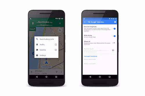 Theo Google, trong chế độ điều hướng, người dùng chỉ cần nói OK Google và liền sau đó là những câu hỏi tựa như chỗ rẽ kế tiếp, bật/tắt chỉ dẫn bằn giọng nói, xem hình ảnh vệ tinh, xem lộ trình thay thế, nhắn tin cho bạn bè, cũng như hàng loạt khẩu lệnh khác. Tuy nhiên, để có thể sử dụng tính năng này, người dùng trước hết phải vào Settings > OK Google detection và kích hoạt tính năng While driving lên như trong ảnh bên dưới.