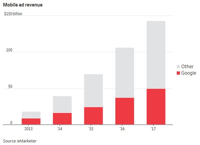 Lợi nhuận từ quảng cáo của Google và các hãng khác. Nguồn: eMarketer
