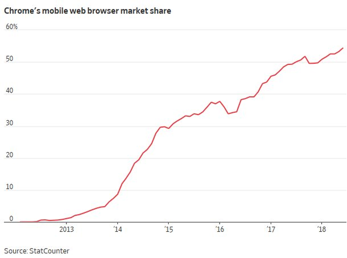 Thị phần trình duyệt Chrome phiên bản di động. Nguồn: StatCounter