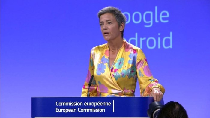Bà Margrethe Vestager, Ủy viên cấp cao Liên minh châu Âu nói: “Google đã sử dụng Android như một công cụ để đổ bê tông cho thế độc quyền của công cụ Google Search. Hành vi này đã dập tắt mọi cơ hội nghiên cứu và đột phá cũng như cạnh tranh một cách lành mạnh của các đối thủ ”.