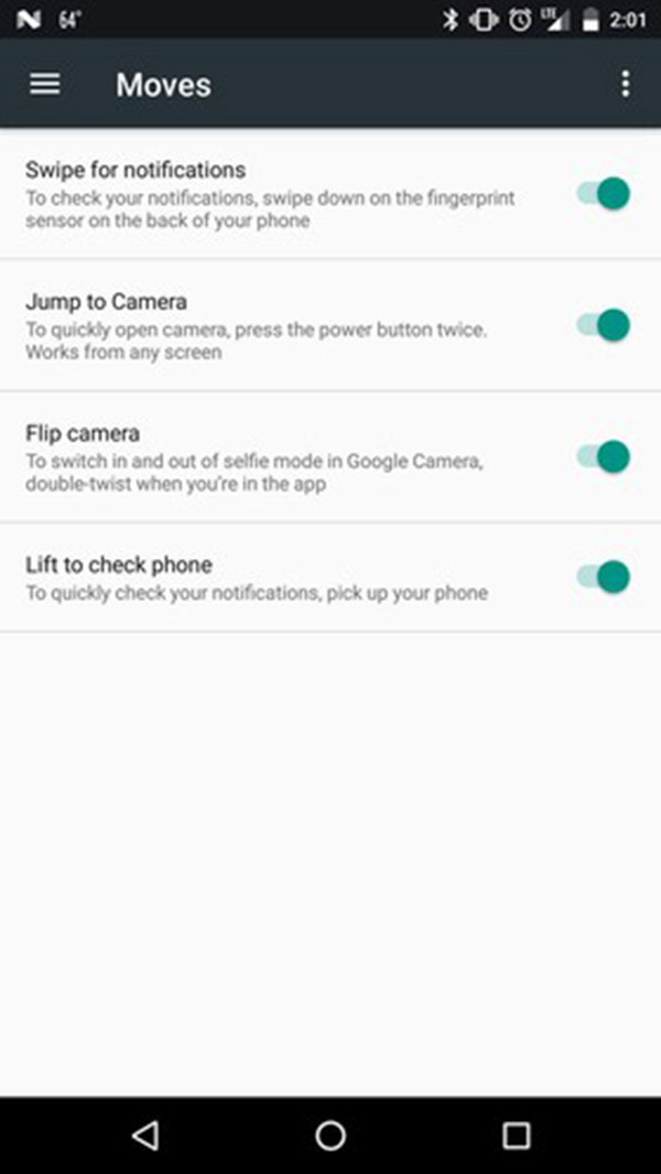 Android 7.1.2 beta đã mang lại tin tốt lành cho người sở hữu điện thoại Nexus 6P. Hệ điều hành mới này đã bổ sung thêm tính năng quét vân tay cho Nexus 6P. Để mở tính năng này, người sử dụng cần truy cập vào Setting > Moves (hình minh họa ở trên). Hồi đầu tháng, tính năng này cũng đã được bổ sung cho người sử dụng Nexus 5X.