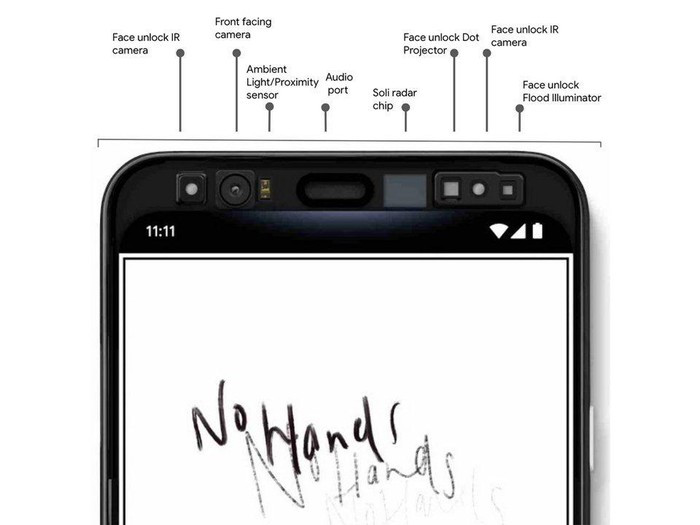 Cũng trong blog, Google sử dụng hình ảnh đại diện cho Pixel 4, phần nào xác nhận tin đồn smartphone có viền dầy phía trên. Đây khả năng là nơi đặt Soli.