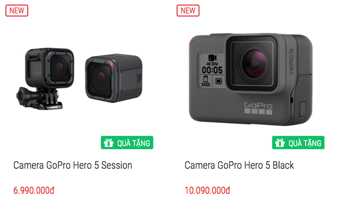 Cụ thể, Hero 5 Session chính hãng có giá 6,99 triệu đồng, còn mẫu camera GoPro Hero 5 Black có giá 10,09 triệu.