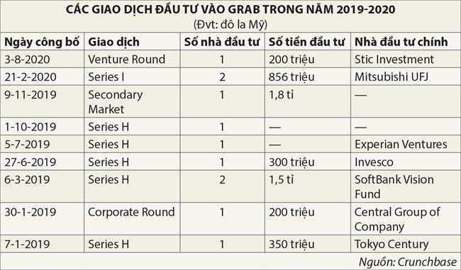 Những “cá mập” nào đã bỏ vốn vào gần đây? Theo dữ liệu của Crunchbase, một số công ty có tên tuổi sau đây đã bỏ vốn vào Grab trong năm 2019: Mitsubishi UFJ Financial Group, Experian Ventures, Invesco, và Vision Fund của SoftBank.