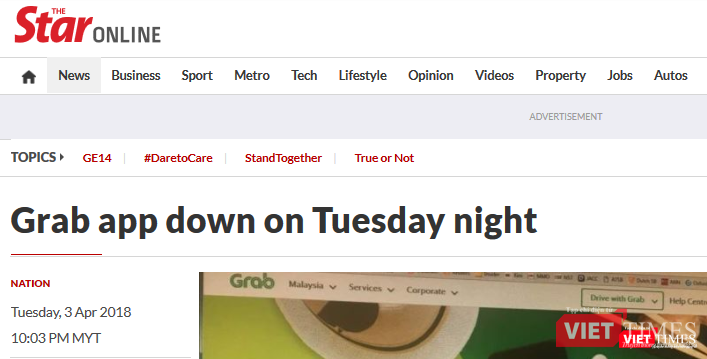 Không chỉ ở Việt Nam, tờ The Star Online của Malaysia cũng đăng tải thông tin về ứng dụng Grab tại Malaysia ngưng hoạt đoạt cùng thời điểm. Rắc rối tương tự cũng xảy ra tại Singapore và Philippines.