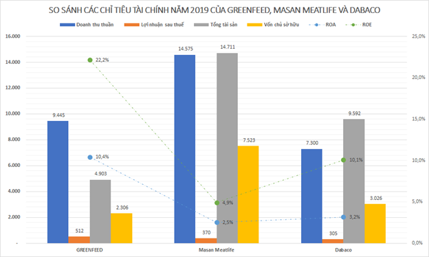 Khó có thể so bì về mặt quy mô, song lợi nhuận của Greenfeed Việt Nam lại ấn tượng hơn nhiều so với Masan Meatlife và Dabaco.