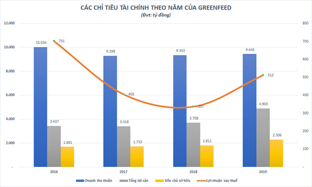 Đến cuối năm 2019, tổng tài sản của Greenfeed Việt Nam đã đạt trên 4.900 tỉ đồng, tăng gần 43% so với thời điểm cuối năm 2016. Vốn chủ sở hữu chiếm gần một nửa tổng tài sản, ở mức 2.306 tỉ đồng.