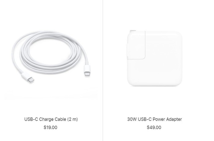 Độc quyền cổng Lightning giúp Apple kiếm bộn tiền từ phụ kiện. Để sạc nhanh trên iPhone, bạn sẽ phải mua hai phụ kiện từ Apple với tổng số tiền 68 USD. Ảnh chụp màn hình.