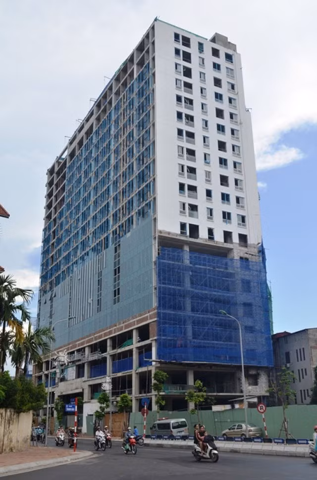 | Tòa nhà 8B Lê Trực đang trong quá trình hoàn thiện. Ảnh:Nhật Quang. |