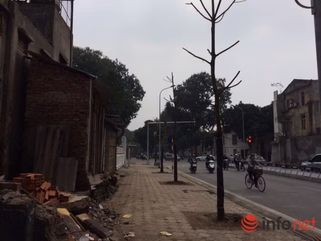 Theo quan sát, hai bên đường đã xuất hiện nhiều nhà siêu mỏng, có nhà đã được chủ nhân làm cửa xếp khóa trái. Nhiều căn nhà khác vẫn ở tình trạng phá dỡ dở dang, có vị trí cao thấp khác nhau khiến tuyến phố trở nên khá lem nhem.