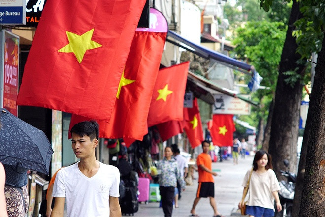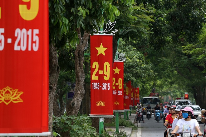 Theo thông báo của Sở Văn hóa, tất cả các cơ quan, đơn vị, lực lượng vũ trang, trường học, bệnh viện và hộ gia đình trên địa bàn thủ đô, treo cờ Tổ quốc từ ngày 1 hết 2/9, tuy nhiên nửa tháng nay, nhiều tuyến phố đã rực màu cờ đỏ, sao vàng.