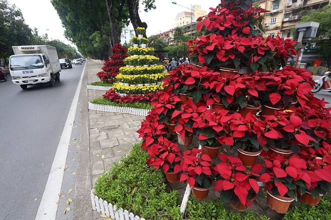 Hoa trang trí được bày trên phố Kim Mã, tuyến đường nối trung tâm với các quận huyện phía Tây của thủ đô. Theo lãnh đạo Công ty cây xanh Hà Nội, hàng chục công nhân được huy động làm việc liên tục cả tháng nay để hoàn thành việc trang trí đường phố nhân dịp Quốc khánh.