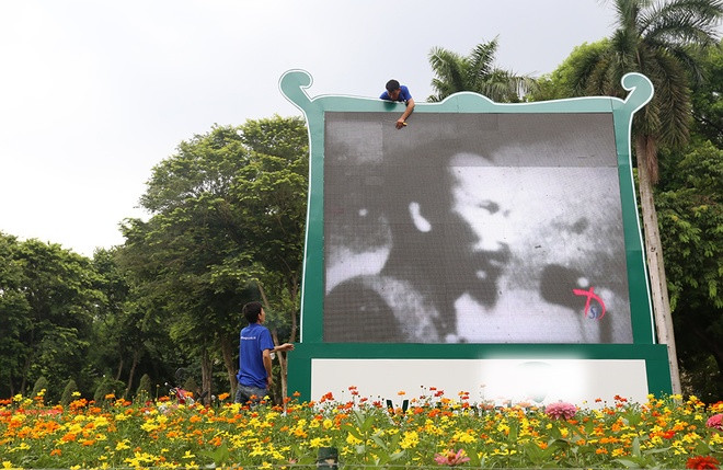Hai nhân viên của công ty Newland hoàn thiện việc lắp đặt hệ thống màn hình led gần tượng đài Lênin, trình chiếu những thước phim tư liệu về Cách mạng tháng 8, Quốc khánh 2/9. Công ty này chịu trách nhiệm lắp đặt 9 màn hình lớn, phần lớn quanh khu vực quảng trường Ba Đình, Hồ Gươm và đến nay đã hoàn thiện. "Số màn hình này do một đơn vị tài trợ, sau khi phục vụ ngày lễ 2/9, sẽ được tháo dỡ và di chuyển đến các địa phương khác phục vụ những dịp lễ hội", một công nhân cho hay.