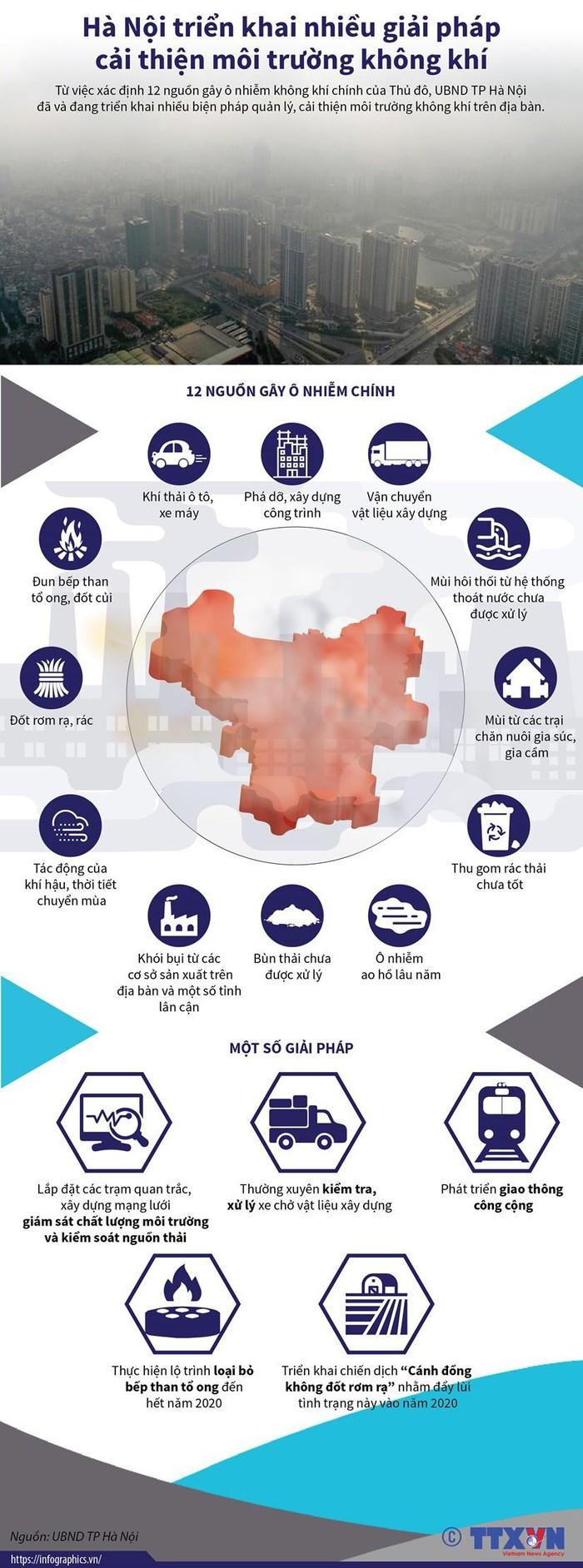 Từ việc xác định 12 nguồn gây ô nhiễm không khí chính của Thủ đô, Ủy ban Nhân dân Hà Nội đã và đang triển khai nhiều biện pháp quản lý, cải thiện môi trường không khí trên địa bàn./.