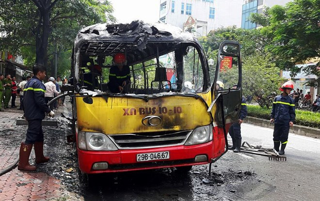 Đại diện Tổng Cty Vận tải Hà Nội cho biết, vào thời điểm trên, nhân viên phụ xe phát hiện có mùi khét nên đã thông báo để lái xe tấp vào lề đường và đưa toàn bộ hành khách xuống xe, đồng thời dùng dụng cụ dập lửa để cố gắng dập tắt đám cháy tại chỗ.