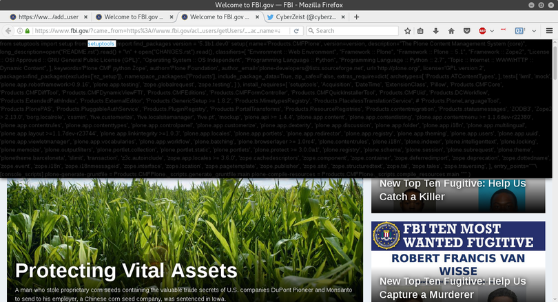 CyberZeist cho biết rằng, những điểm dễ bị tổn thương trong nguồn tài nguyên Internet FBI đang được chào bán trên Internet, tại một phân mảng trên mạng Internet mà trong giới hackers thường gọi là "DeepWeb" hoặc "darknet".
