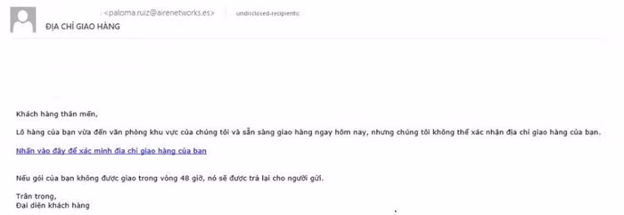 Nội dung email chứa đường dẫn đến mã độc (Ảnh: CyRadar)