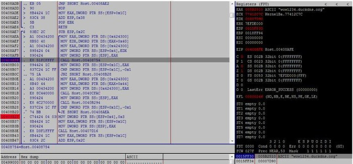 Mã độc được kết nối đến máy chủ độc hại. Thay vì đăng ký tên miền, hacker sử dụng DNS miễn phí nhằm linh hoạt trong việc thay đổi tên miền, cũng là để qua mặt một số biện pháp bảo vệ. Tùy thuộc vào lệnh trả về mã độc sẽ thực hiện những hành vi độc hại khác nhau.