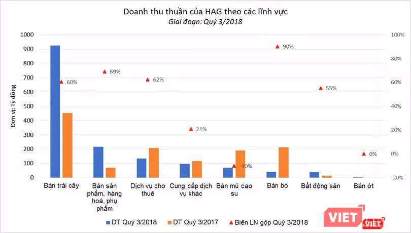 Đối với hoạt động bán bò, doanh thu sụt giảm là do HAG đã dồn lực cho mảng trái cây và không ưu tiên nguồn vốn lưu động tài trợ cho lĩnh vực này. Tương tự, đối với hoạt động bán mủ cao su, HAG chủ trương không bán nhiều trong bối cảnh giá cao su giảm mạnh, mà sẽ chờ giá cao su tăng trở lại.